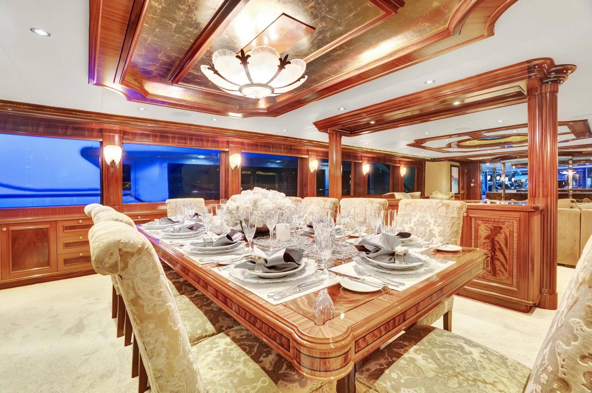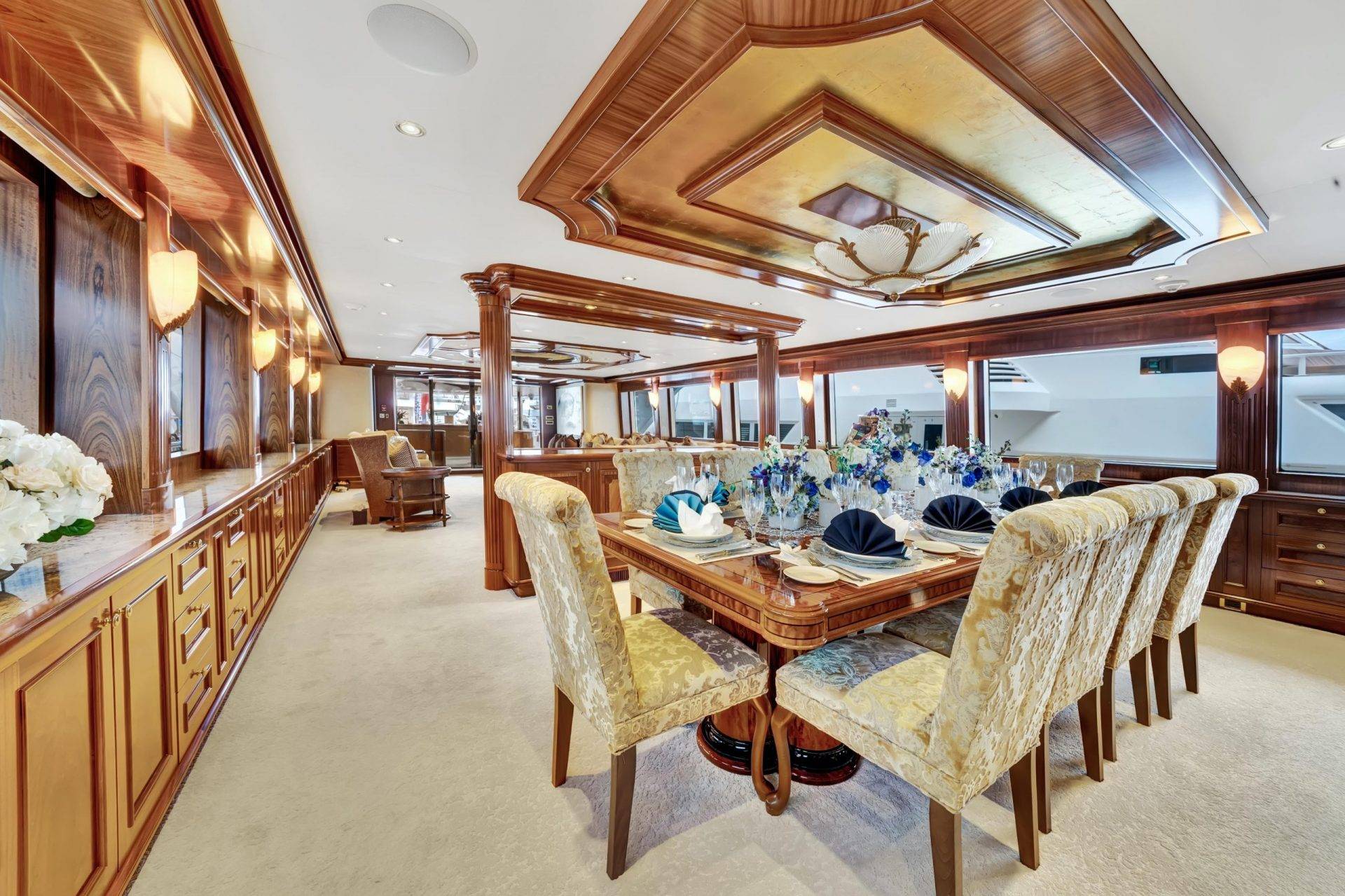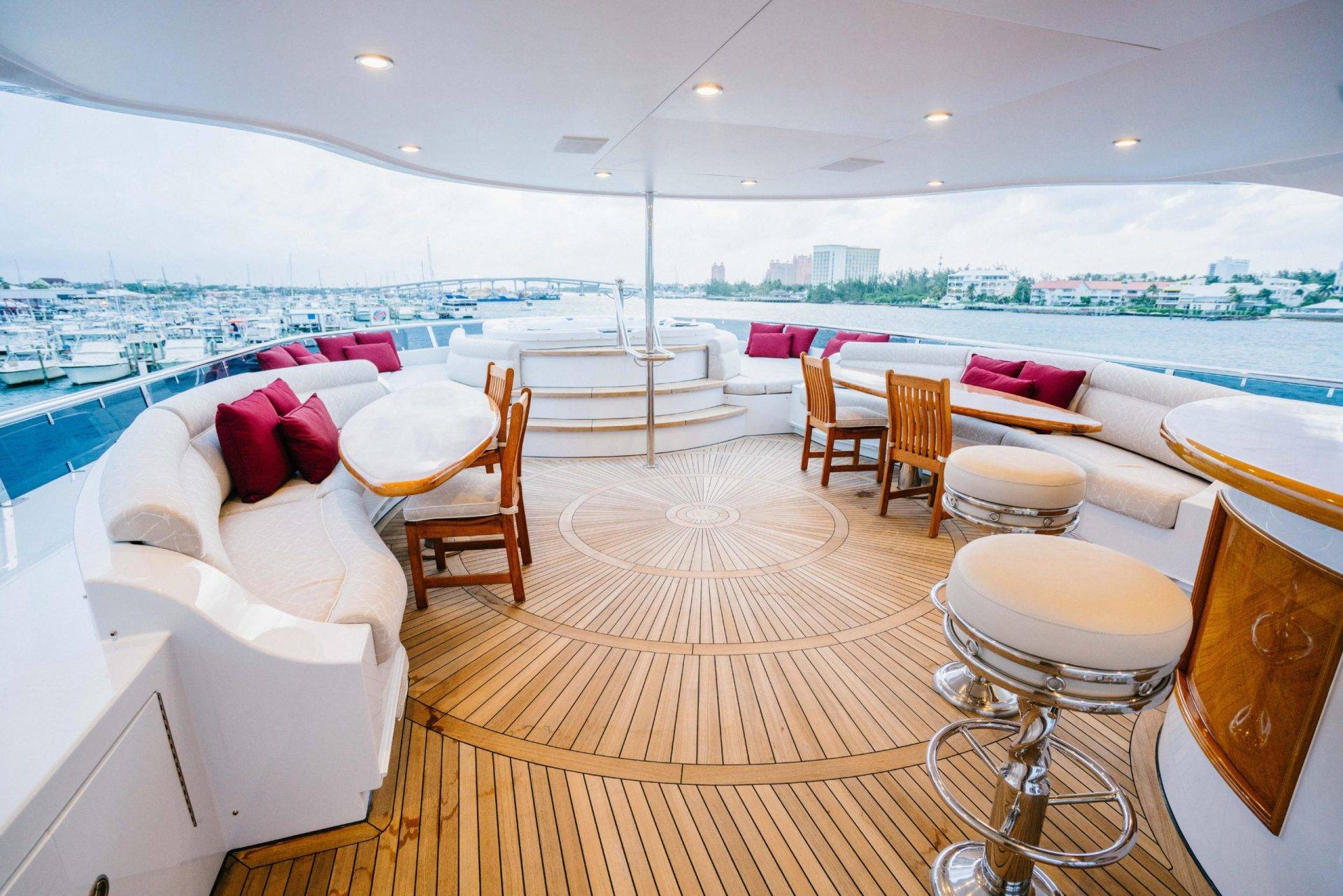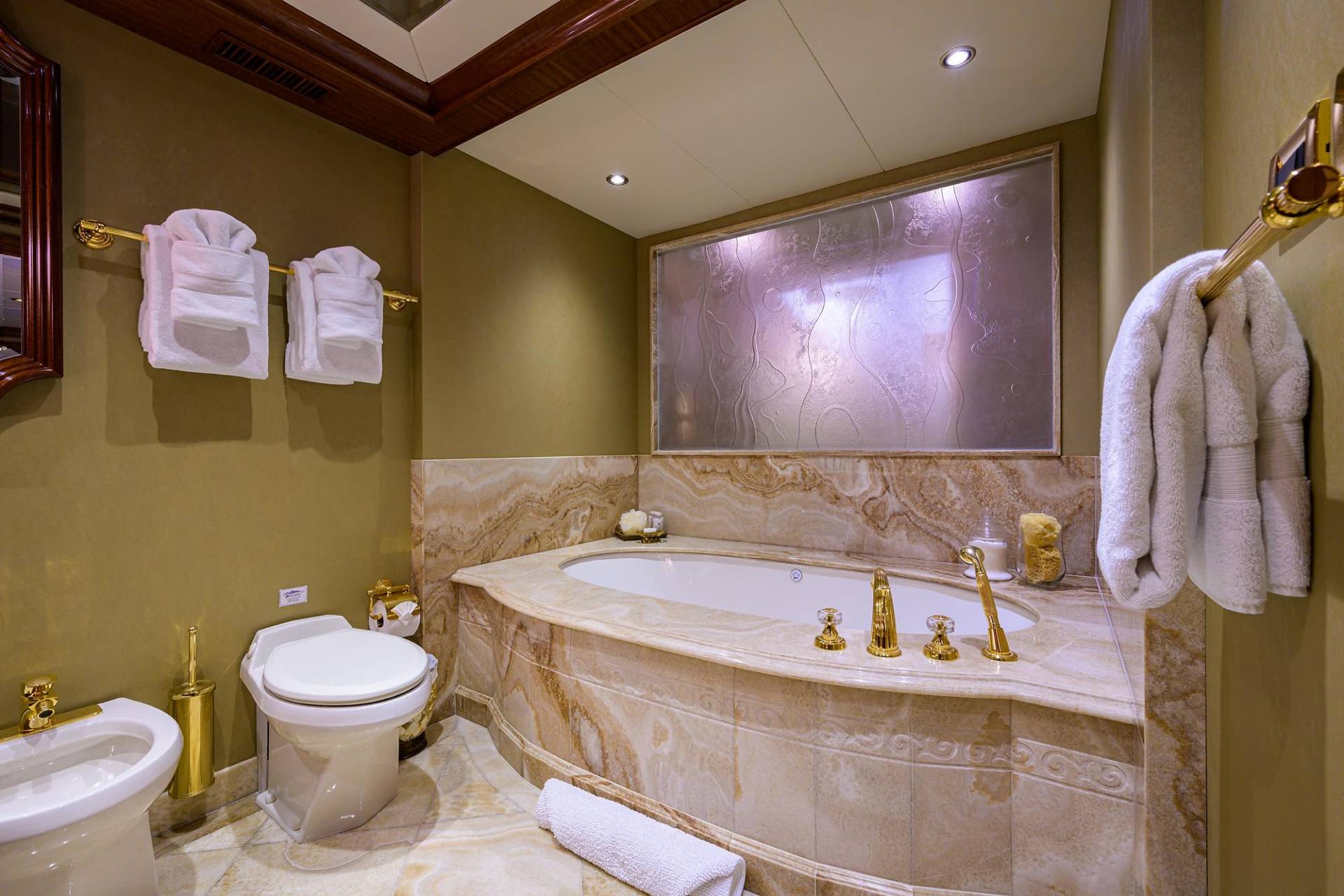 Lowest price guaranteed, rented directly by the owners, without brokers or intermediaries. The yacht accommodates twelve guests in four grand staterooms, complete with their own en-suite marble bathrooms. The VIP and Master staterooms boast king-sized beds, jacuzzi baths, and walk-in closets with custom wardrobes. Dine alfresco on the pearly aft deck or glide into the salon to sip a cocktail at the wet bar. Regardless of where you are, the surround-sound audio system keeps everyone dancing until dusk. After a refreshing day of fishing and exploring on the yacht’s jet ski, enjoy dinner with your loved ones in the formal dining room and cheers to tomorrow’s adventure!