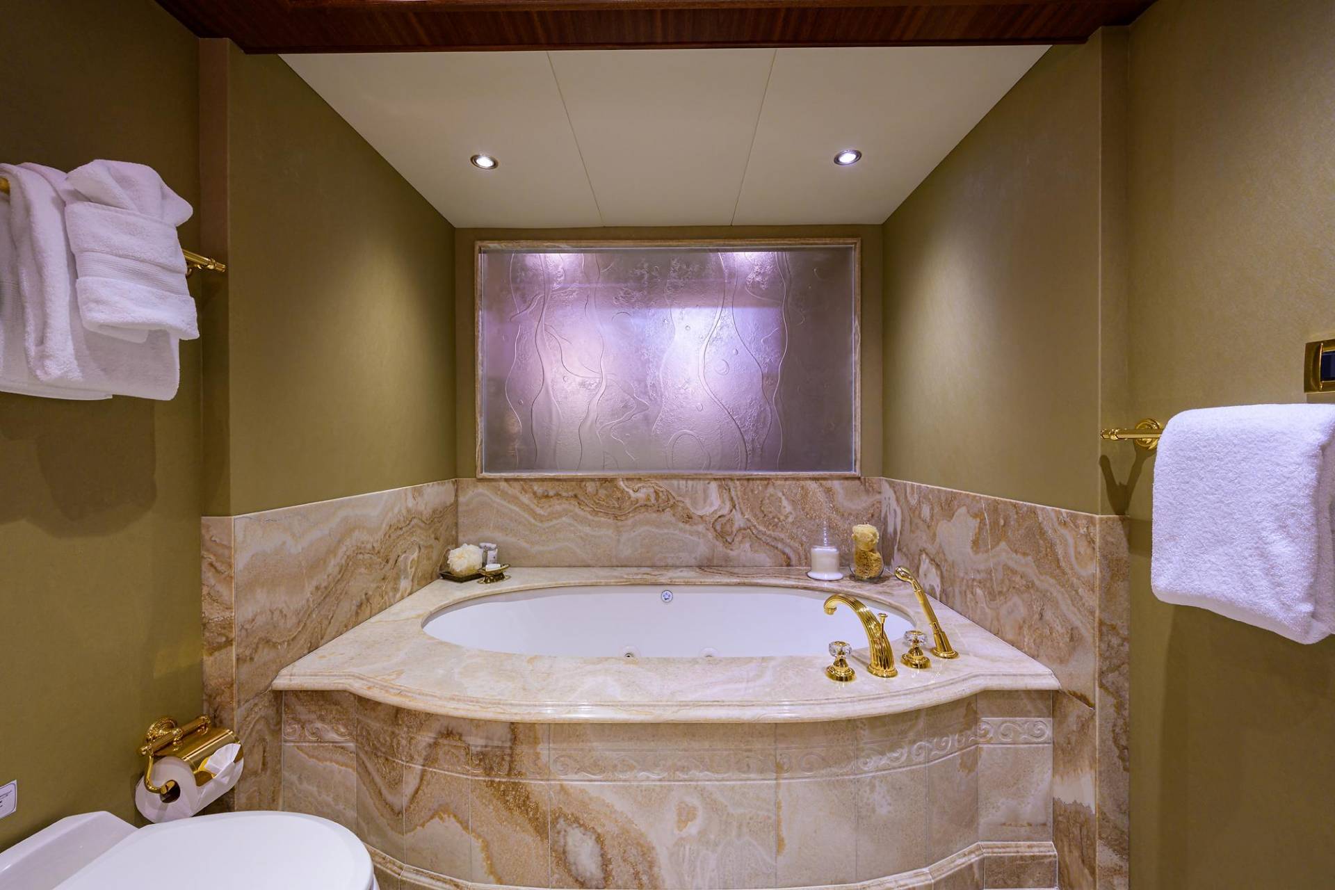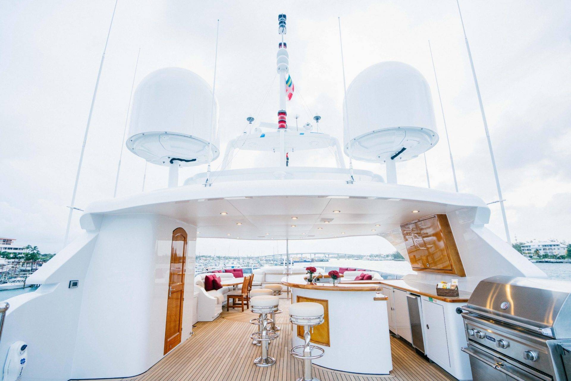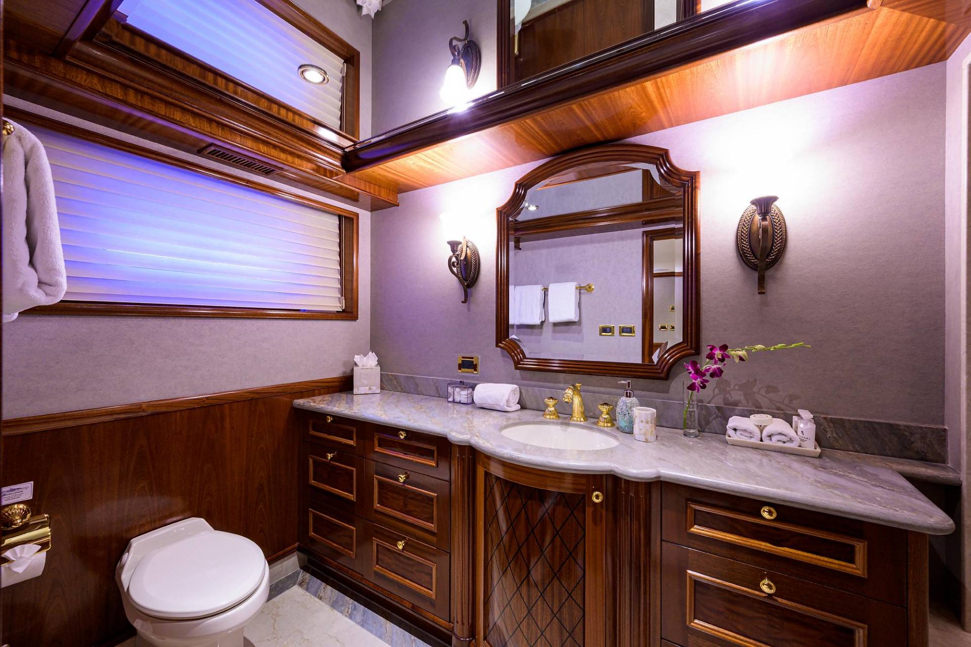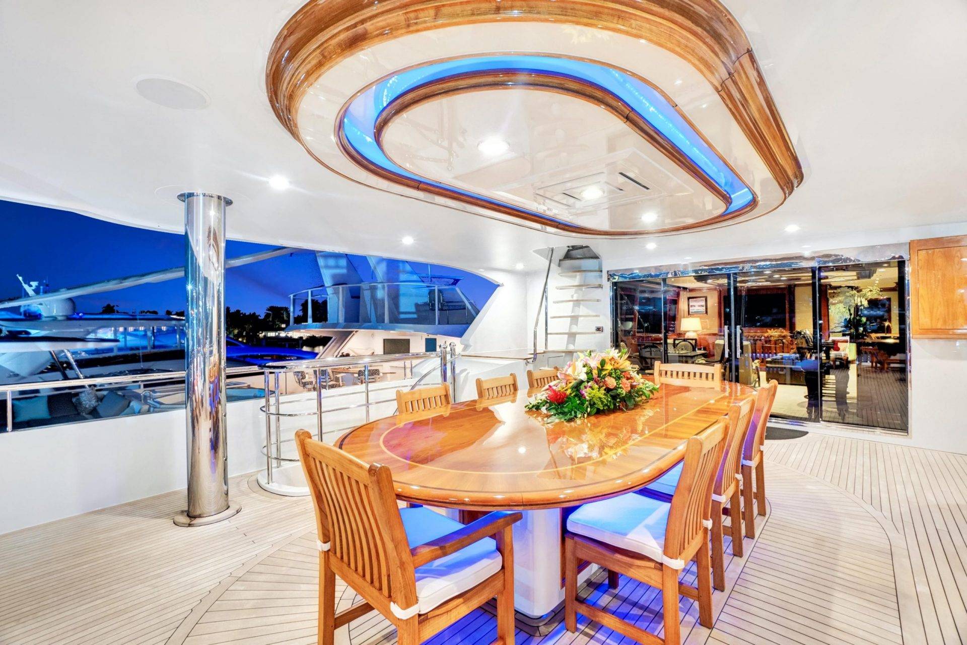 Lowest price guaranteed, rented directly by the owners, without brokers or intermediaries. The yacht accommodates twelve guests in four grand staterooms, complete with their own en-suite marble bathrooms. The VIP and Master staterooms boast king-sized beds, jacuzzi baths, and walk-in closets with custom wardrobes. Dine alfresco on the pearly aft deck or glide into the salon to sip a cocktail at the wet bar. Regardless of where you are, the surround-sound audio system keeps everyone dancing until dusk. After a refreshing day of fishing and exploring on the yacht’s jet ski, enjoy dinner with your loved ones in the formal dining room and cheers to tomorrow’s adventure!